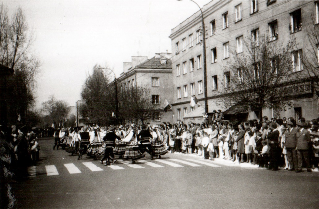 Pochód pierwszomajowy, występy szkolnego zespołu, Ursus, pl. 1000-lecia - lata 70-te XX w.