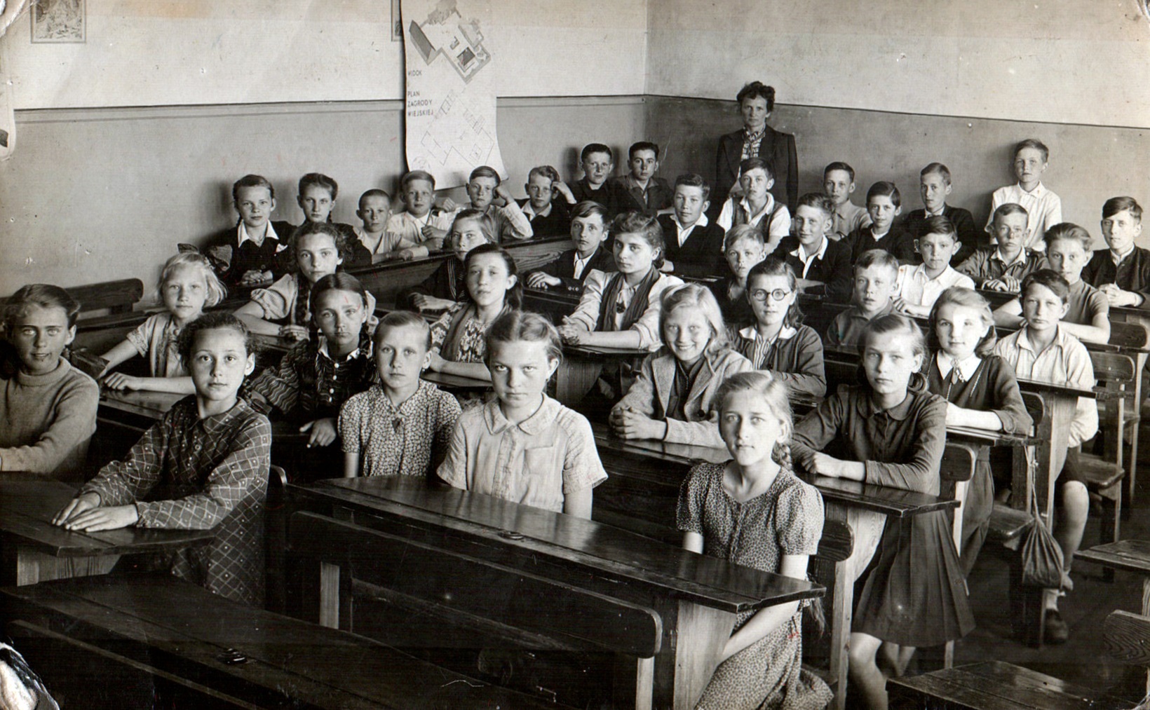 Klasa w Szkole Powszechnej w Czechowicach (1936)