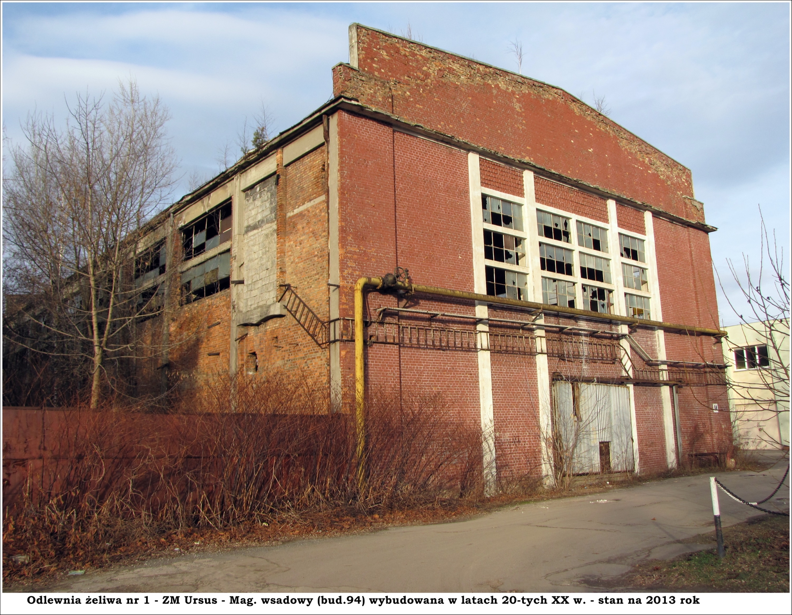Większość ukazanych na fotografiach budynków powstała w latach 20-tych XX wieku i w zasadzie należały wówczas do dwóch zakładów – Fabryki Metalurgicznej „Ursus” i Fabryki Samochodów „Ursus”. W latach 30-tych zostały upaństwowione i weszły w skład Państwowych Zakładów Inżynieryjnych „Ursus”. Zmienił się profil produkcji i od 1933 roku, zakłady zajmowały się w 80 procentach wytwarzaniem sprzętu wojskowego na potrzeby nie tylko polskiej armii.