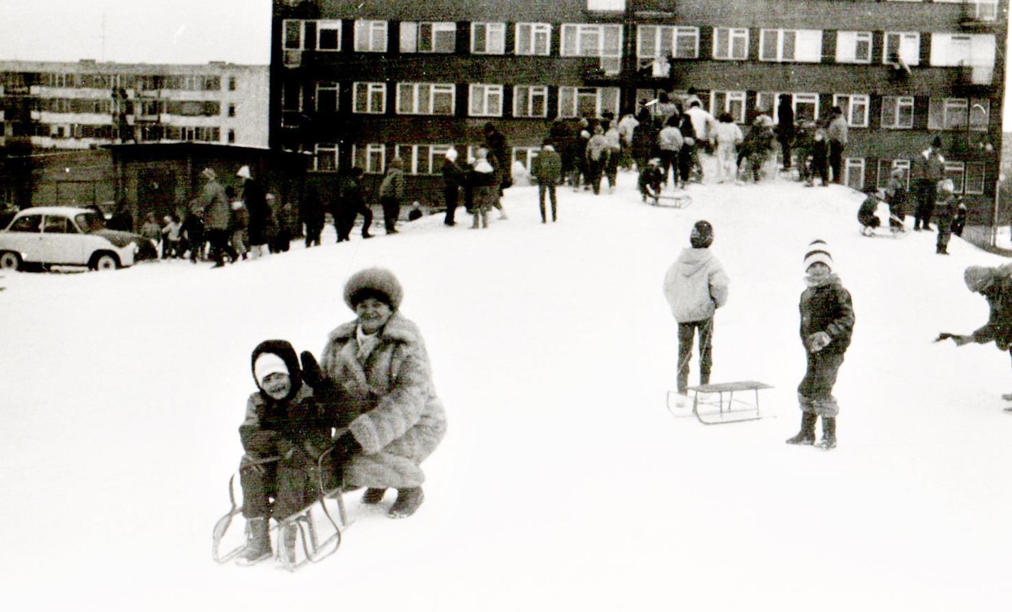 Ursus - Osiedle Niedźwiadek, ul. Zagłoby, górka dla sanek - luty 1984
