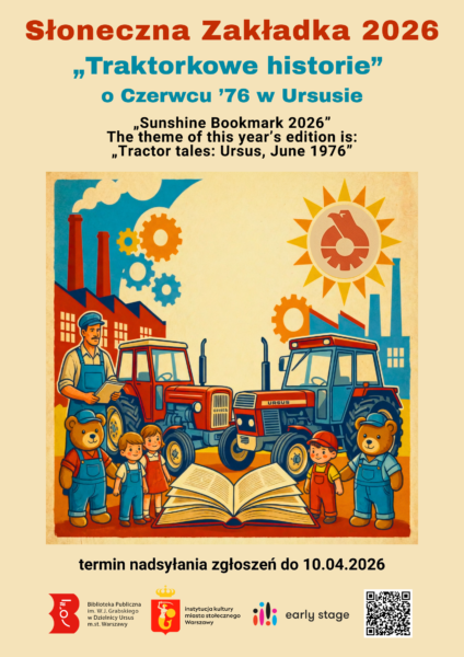 Biblioteka Publiczna oraz Early Stage angielski dla dzieci i młodzieży (filie w Ursusie) ogłaszają Ogólnopolski Konkurs Plastyczny „Słoneczna Zakładka 2026”. Temat: „Traktorkowe historie” o Czerwcu ’76 w Ursusie